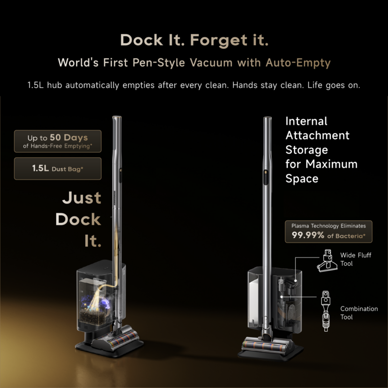 New Dreame Air Station Pen-Style Cordless Stick Vacuum | Auto-Empty | Vacuum + Mop | 1.19kg | 40 Mins | Auto Cut Hair