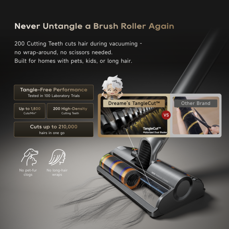 Dreame TriCut Brush for Robot Vacuum Cleaner | Anti-Tangle Hair Cutting Brush 2.0 | Maintenance-Free | Cut all long hair